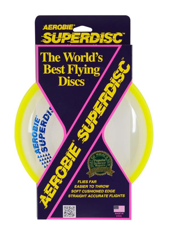 Létající talíř Aerobie Superdisc je vhodný pro hráče všech úrovní a doporučený i pro úplné začátečníky. Létající talíř Superdisc letí díky vylepšené konstrukci ráfku (spoiler rim) rovně a přesně. Tato konstrukční vychytávka udržuje během celého letu vztlakovou sílu na středu létajícího talíře, což výrazně pomáhá stabilitě letu. Protože je okraj létajícího talíře z trvanlivé měkčené gumy, skvěle se chytá i při vyšších rychlostech a lehce se odráží i od případných překážek, aniž by se poškodil. I po mnoha přistáních na tvrdý povrch je okraj létajícího talíře Aerobie Superdisc hladký a příjemný do ruky. Běžný létající talíř mívá po pár dopadech na chodník na okrajích škrábance a někdy až ostré zářezy. Létající talíř Superdisc má na vnitřní úchopové straně měkčené protiskluzové výstupky (gripy), při hodu tak pevně sedí v ruce. Vlastnosti: - ráfek Spoiler Rim pro dlouhý a přesný let - vhodný pro hráče všech úrovní vč. úplných začátečníků - měkčený okraj s protiskluznými gripy pro pevný úchop a příjemné chytání - plave ve vodě - vhodný do bazénu, na koupaliště či na pláž - i psy ho milují - měkký netoxický okraj talíře je neporaní