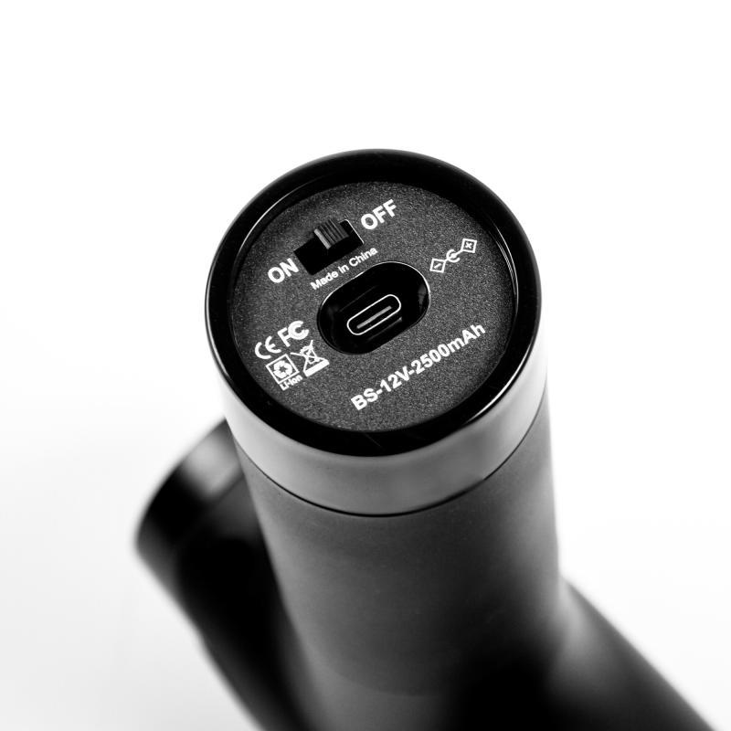 Masážna pištoľ má zabudovanú lítium-iónovú batériu s kapacitou 2500mAh, ktorá vydrží na jedno nabitie až 3 hodiny, podľa používaného rýchlostného stupňa.