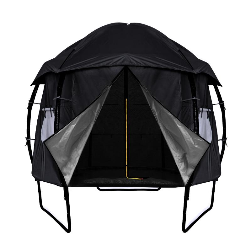 A v čase, keď trampolína nie je aktívne využívaná, pomáha stan chrániť odrazovú plochu pred znečistením a UV žiarením.