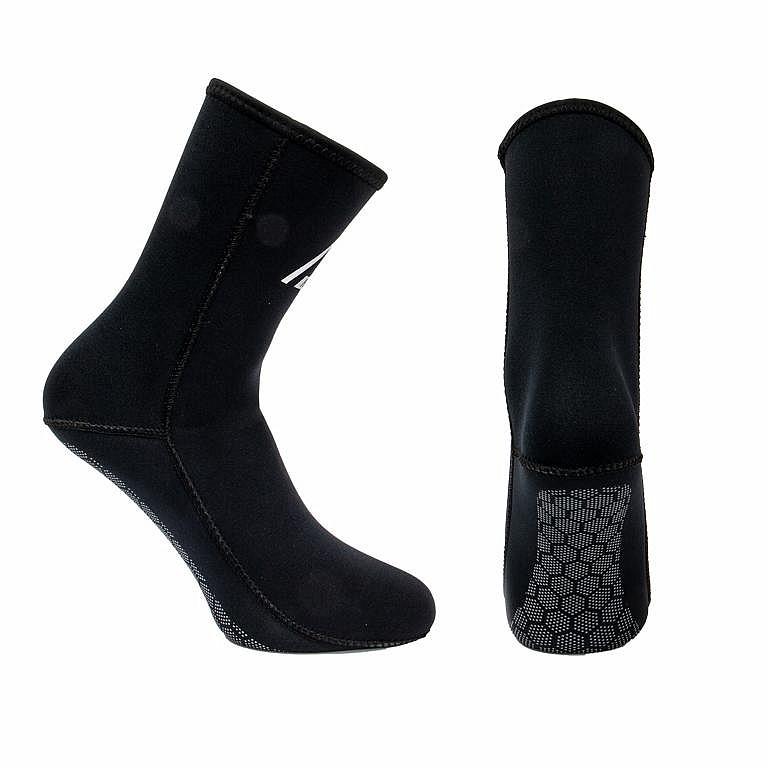 3 mm, neoprénové ponožky s protišmykovým nástrekom.Tieto neoprénové ponožky sa používajú ako zateplenie do topánok na potápanie, vďaka svojej hrúbke nijako neobmedzujú priestor.