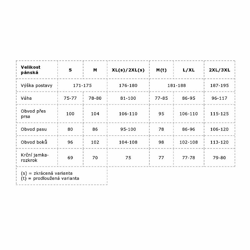 | Tabulka velikostí: | |