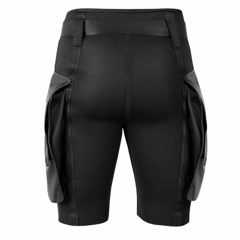 Shortky z neoprenu mají sílu 3 mm a jsou šity s vyšším pasem a doplněné stahovacím páskem. Díky tomu neoprenové šortky zůstanou vždy na svém místě i při plném využití obou kapes.