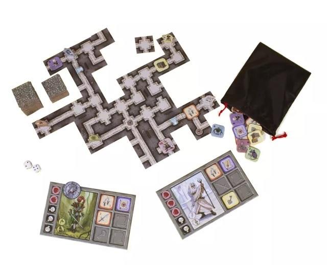 80 destiček katakomb, 6 kartonových figurek hrdinů se stojánky, 6 karet hrdinů, 5 desek inventáře, 25 žetonů životů, kartonová věž na dílky, neprůhledný sáček na nestvůry a poklady, 43 žetonů nestvůr, 10 žetonů truhel, 2 hrací kostky, 1 žeton prokletí a pravidla hry (v češtině, slovenštině, polštině a rumunštině).