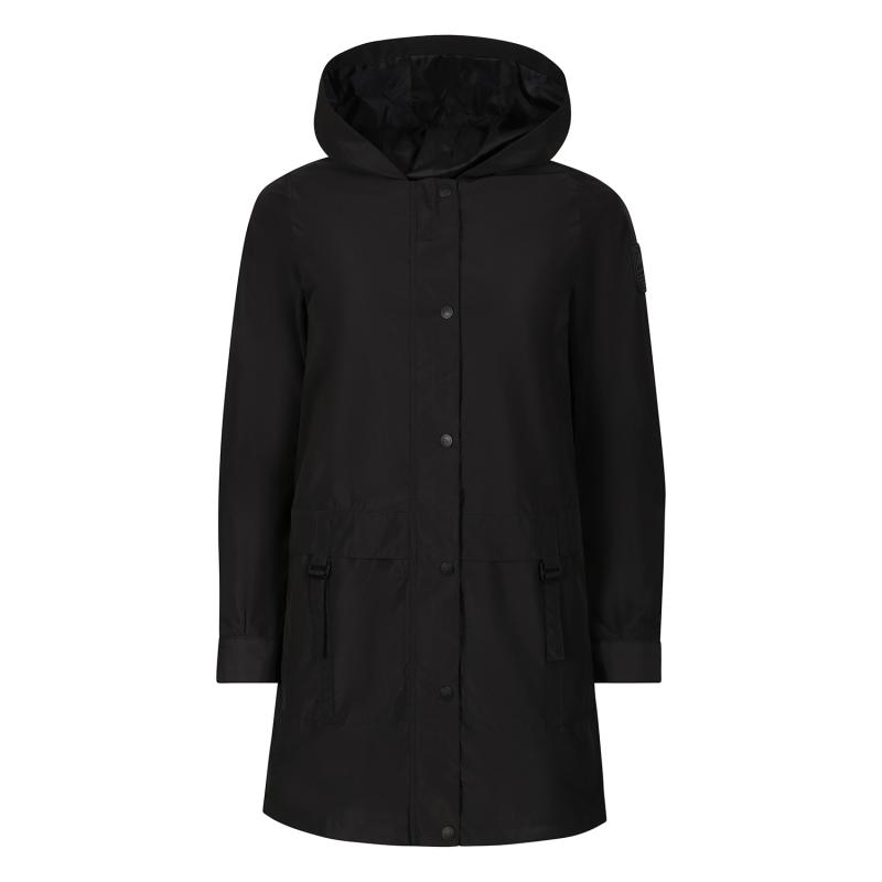 Použitý materiál je 100% polyester s membránou PTX, která zaručuje nepromokavost, větruodolnost a zároveň paropropustnost. Speciální vodoodpudivá úprava DWR pomáhá odpuzovat vodu a udržovat kabát suchý i za deště. Polopřiléhavý střih přispívá k pohodlnému nošení a zároveň zachovává elegantní siluetu.