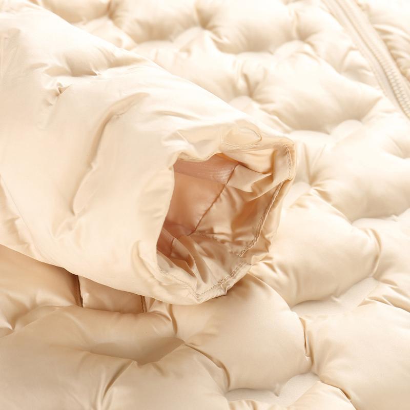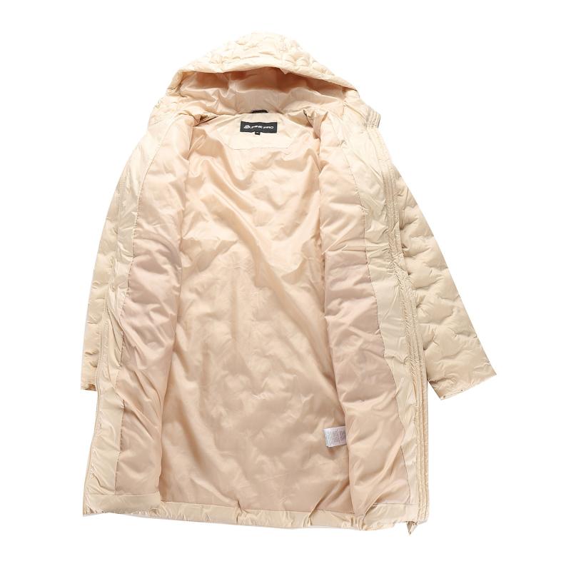 Tento dlhý, prešívaný a embosovaný kabát je vyrobený z vodoodpudivého a ultrľahkého materiálu so záterovou úpravou, ktorá spoľahlivo chráni proti vlhkosti a zabezpečuje komfort pri nosení ako v meste, tak v prírode.