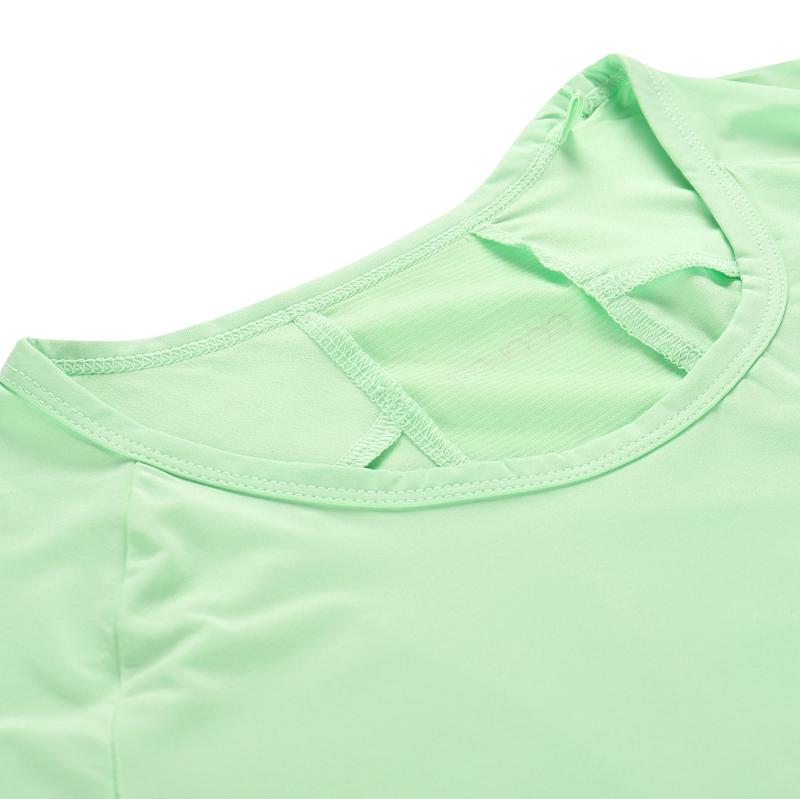 Toto dámske tričko je vyrobené z materiálu COOL-DRY, ktorý je rýchloschnúci a elastický, čo umožňuje efektívny odvod vlhkosti od pokožky a udržiava telo v suchu aj pri intenzívnom pohybe.