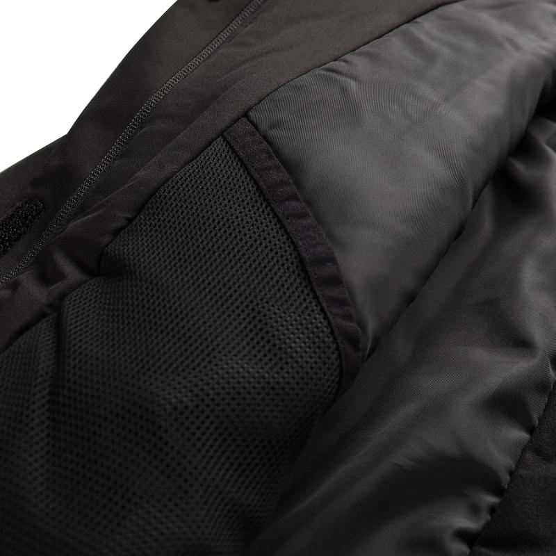 • Rukávy: anatomicky tvarované, s vnitřní elastickou manžetou na palec a stahováním manžet