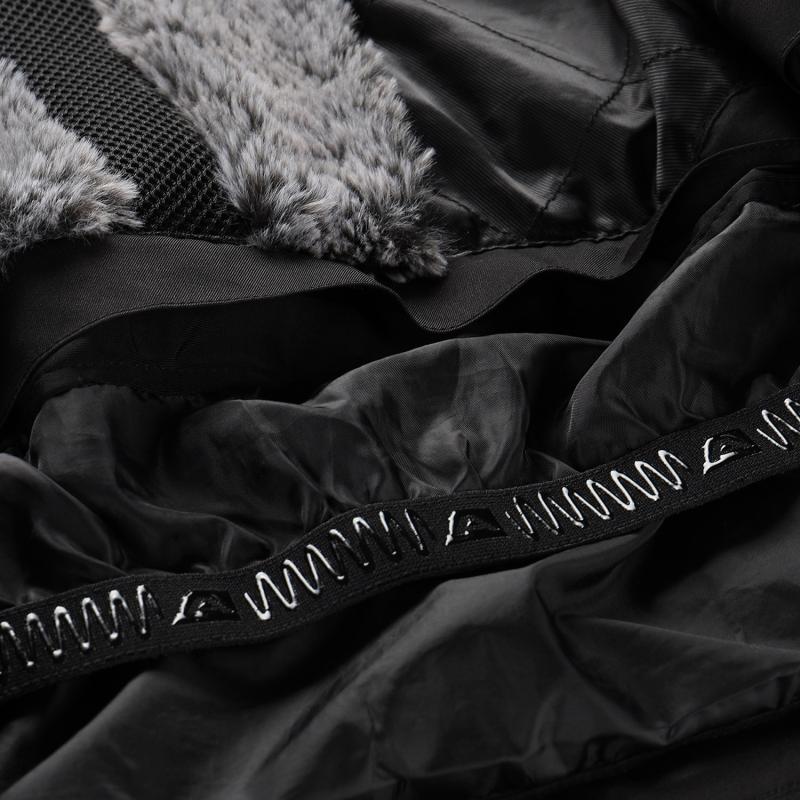 Bunda má přiléhavý střih a je vybavena sedmi kapsami, včetně klíčenky v kapse. Odepínatelná kapuce s možností stažení nabízí variabilitu a ochranu podle potřeby, navíc je bunda doplněna o odepínatelnou kožešinu. Pro lepší komfort při pohybu má materiál pružnost a celopotištěný design.