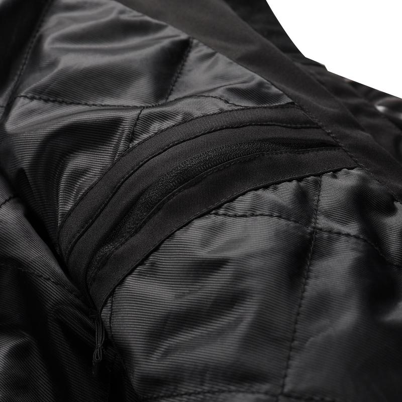 Pro lepší regulaci teploty slouží odvětrávání v podpaží se zipy. Rukávy jsou opatřeny vnitřními elastickými manžetami na palec, které brání pronikání sněhu a chladu. Sněhový pás je rovněž odepínatelný a obsahuje elastickou vsadku v horní části pro větší rozsah pohybu. Spodní část bundy lze upravit pomocí stahování gumičkou, což zlepšuje těsnost a pohodlí.