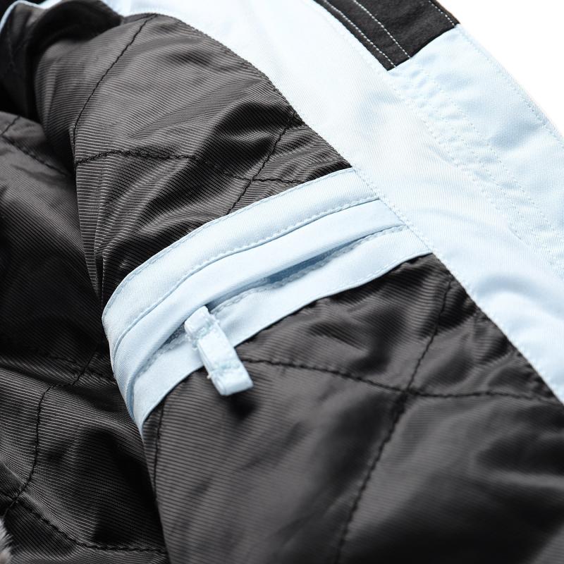 Praktické využití zajišťuje sedm kapes včetně kapsy s klíčenkou, kde lze bezpečně uložit drobnosti. Sněhový pás je odepínatelný a doplněný elastickou vsadkou v horní části, což zvyšuje rozsah pohybu a pohodlí při aktivitách na sněhu.