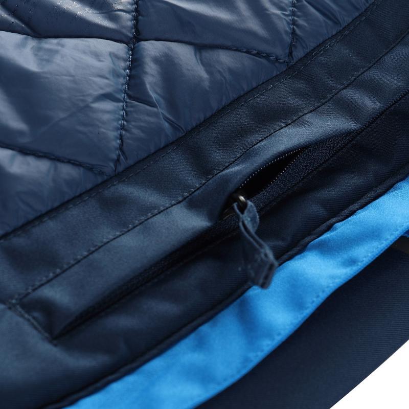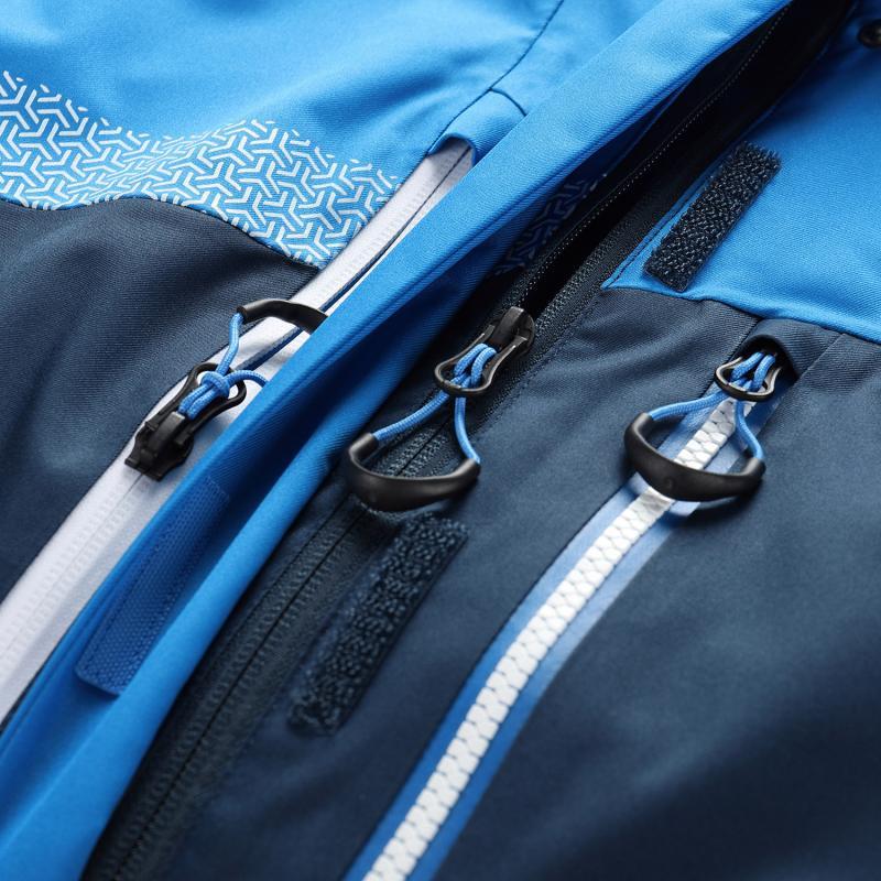 Spodní lem lze snadno stáhnout gumičkou podle potřeby, což pomáhá udržet teplo uvnitř. Praktické uspořádání kapes zahrnuje celkem sedm míst pro uložení drobností: náprsní kapsu s voděodolným zipem, kapsu na rukávu na skipas, dvě přední kapsy na zip, vnitřní kapsu na zip a síťovanou kapsu na lyžařské brýle.