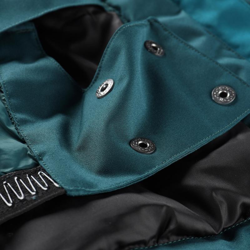 Sněhový pás je odepínatelný a doplněný elastickou vsadkou v horní části, která zvyšuje rozsah pohybu. Bunda je vybavena poutky pro připnutí ke kalhotám, což zabraňuje pronikání sněhu mezi bundu a kalhoty.