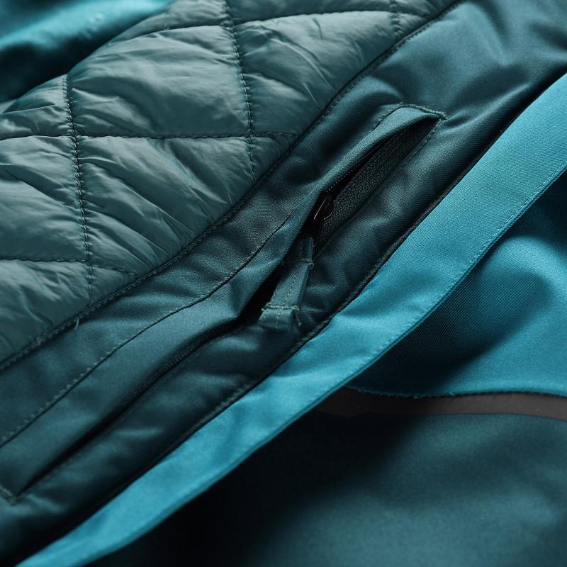Praktické využití zajišťuje celkem sedm kapes: náprsní kapsa s voděodolným zipem, kapsa na rukávu na skipas, dvě přední kapsy na zip, vnitřní kapsa na zip a síťovaná kapsa určená pro lyžařské brýle. Pro snadnou manipulaci i v rukavicích jsou zipy opatřeny delšími taháčky.