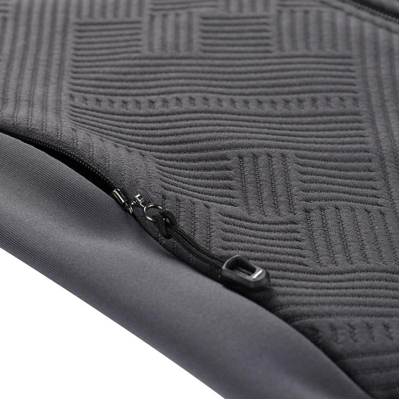 Dve predné vrecká na zips poskytujú dostatok priestoru pre drobnosti, ktoré chcete mať vždy po ruke, a zároveň slúžia ako štýlový detail. Mikinu dopĺňa decentná potlač na prednom diely, ktorá podčiarkuje jej moderný a športovo-elegantný charakter.