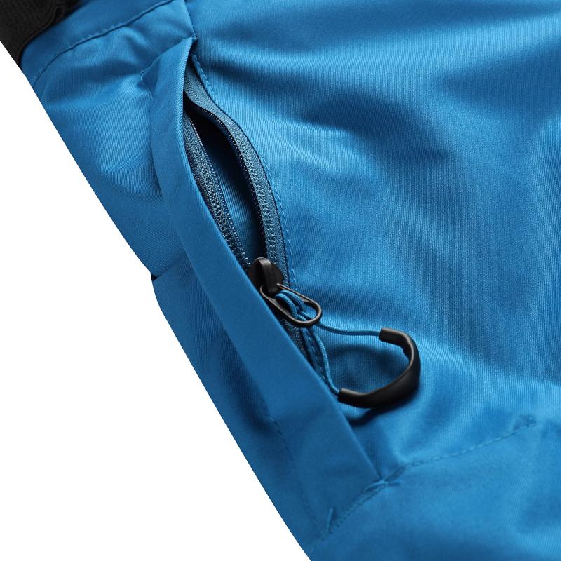 Zvýšený pás na zadnom diely s reguláciou a nariasením do gumy zlepšuje fixáciu nohavíc a zabraňuje prenikaniu snehu. Podlepované švy zvyšujú ochranu proti vlhkosti, zatiaľ čo pútka umožňujú pevné prichytenie nohavíc k bunde, čím sa znižuje riziko prieniku chladu. Odopínateľné a nastaviteľné traky zabezpečia pevné držanie nohavíc bez obmedzenia pohodlia.