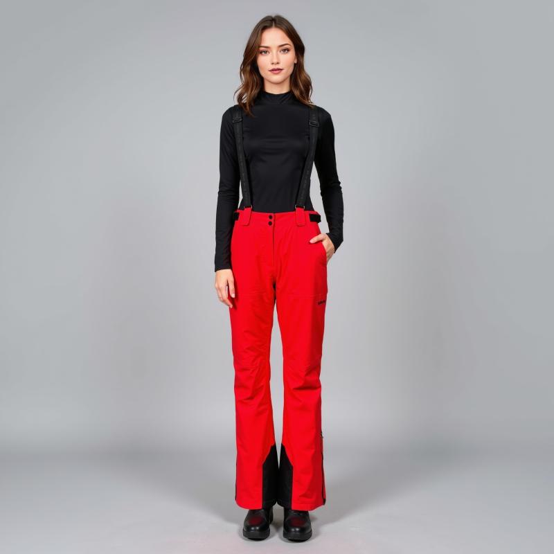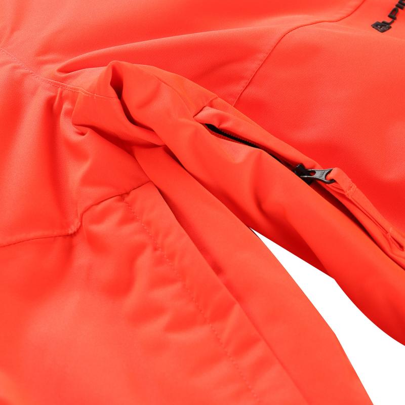 Tieto dámske lyžiarske nohavice v oranžovo-červenej farebnej kombinácii sú vyrobené z nepremokavého, priedušného, vetruodolného a pružného materiálu s membránou PTX SNOW, ktorá spoľahlivo chráni pred snehom i dažďom. Vďaka strednej hrejivej výplni poskytujú dostatočné teplo aj pri nízkych teplotách. Polopriliehavý strih s anatomicky tvarovanými kolenami umožňuje pohodlný a voľný pohyb počas lyžovania alebo snowboardingu. Zvýšený zadný pás s možnosťou regulácie a elastickou vsadkou zabezpečí, že nohavice dobre sedia a nešmýkajú sa, navyše odopínateľné a nastaviteľné traky prispievajú k väčšiemu komfortu pri nosení.