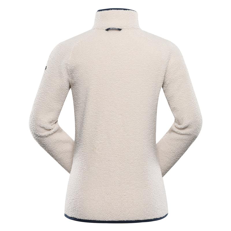 Strih mikiny je polopriliehavý a prispôsobený ženskej postave, čo zvýrazňuje siluetu a zároveň poskytuje dostatok priestoru pre pohodlné nosenie. Vysoký golier je lemovaný gumou a spoľahlivo chráni krk pred chladom, pričom krytka pri brade zabezpečuje pohodlie aj pri zapnutom zipsu.
