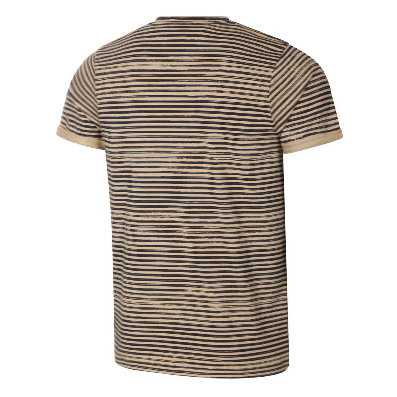 Toto tričko zaujme originálním pruhovaným potiskem, který mu dodává výrazný a zároveň stylový vzhled. Nenápadná nášivka umístěná v bočním švu podtrhuje jeho pečlivé zpracování a kvalitu. Vyrábí se z výběrové bavlny FINE COTTON (95 %), která je příjemná na dotek a zároveň prodyšná, což zajišťuje komfort i při delším nošení. Materiál je doplněn o 5 % elastanu, díky čemuž je celopotištěný a zároveň pružný, což umožňuje volnost pohybu a pohodlné nošení bez omezení. Polopřiléhavý střih trička zajistí elegantní padnutí na tělo, aniž by omezoval aktivitu, a je tak vhodný pro každodenní nošení, volnočasové aktivity i procházky v přírodě. Spojuje v sobě praktičnost, styl a komfort, což z něj činí nadčasový kousek pro moderního muže.