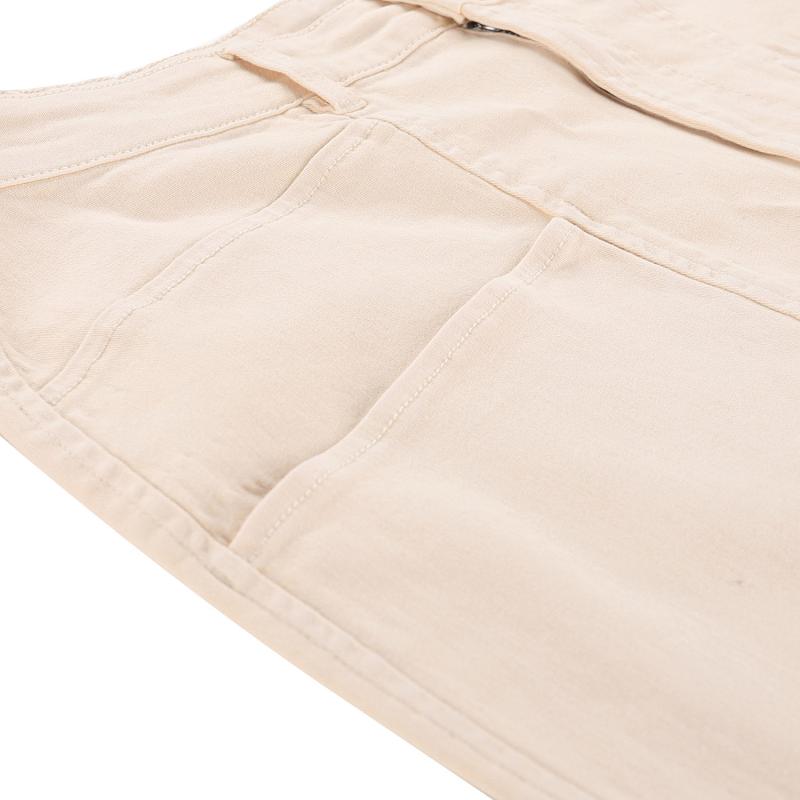 Materiál je zložený z 98 % bavlny a 2 % elastanu, čo zaručuje prirodzenú priedušnosť a miernu pružnosť pre lepší komfort pohybu. Farba neutrálna / zemité tóny sa ľahko kombinujú s rôznymi vrškami a doplnkami, takže sukňa je vhodná ako na každodenné nosenie v meste, tak na voľnočasové aktivity v prírode.