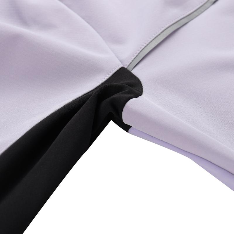 Polopriliehavý strih je doplnený anatomicky tvarovanými rukávmi a spodnou časťou nariasenou do gumy, čo zvyšuje pohodlie a zabezpečuje lepšie prilnutie k telu. Krytka pri brade chráni pred vetrom a dve praktické vrecká so zipsami sú ideálne pre bezpečné uloženie drobností. Bezpečnosť za šera alebo tmy zvyšuje reflexný potlač na švoch.