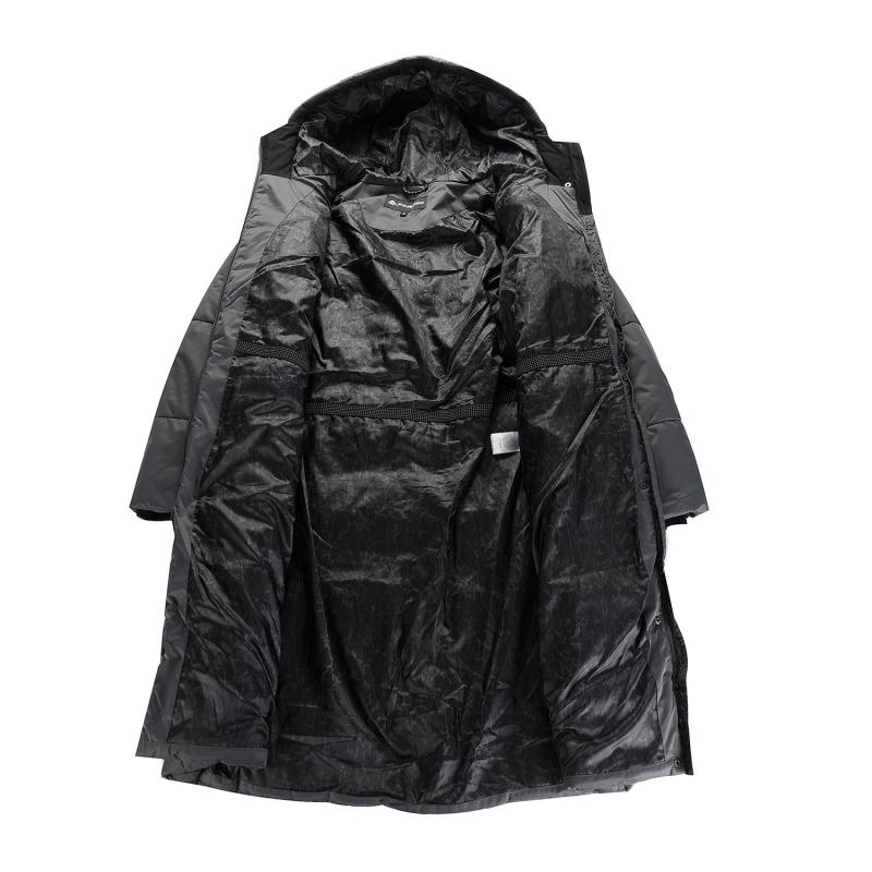 Kabát má silnú hrejivú výplň, ktorá udrží telo v teple aj za chladnejších dní. Jeho elegantný, voľnejší a nadýchaný strih ponúka dostatok priestoru pre vrstvenie a príjemný pocit pri nosení. Nechýba ani neodpínateľná kapucňa, ktorá vás spoľahlivo ochráni pred vetrom a dažďom, a rukávy zakončené lemom z príjemného úpletu, ktorý zabraňuje prenikaniu chladu.