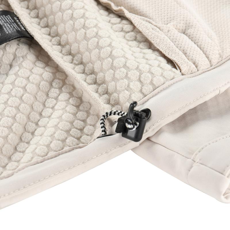 Polopřiléhavý střih bundy se přizpůsobí ženské postavě a zaručuje pohodlí během celodenního nošení. Součástí je odepínatelná kapuce se stahováním, která umožňuje přizpůsobit ochranu podle aktuálního počasí. Prodloužená spodní část s možností regulace šířky stahováním gumičkou zvyšuje komfort a ochranu proti větru.