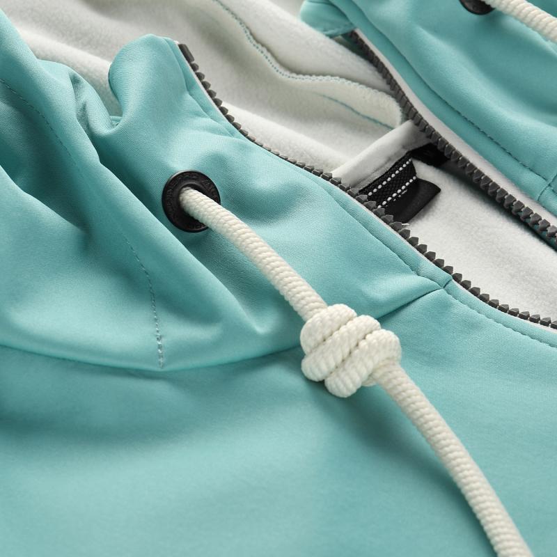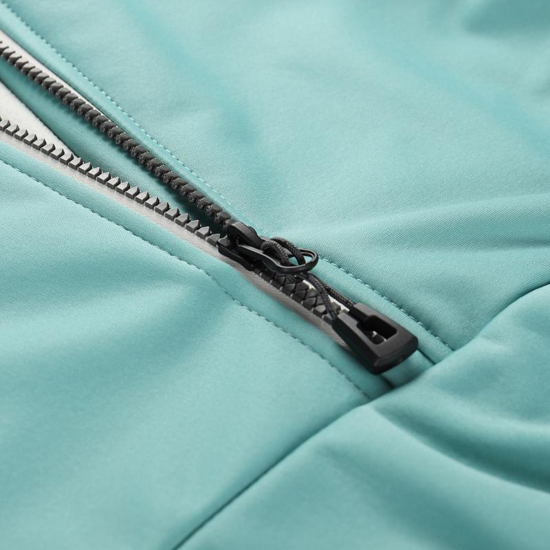 Praktičnosť podporujú tri vrecká: dve predné so zipsom a jedno na rukáve určené pre skipas. Kapucňa je neodopínateľná a má možnosť stiahnutia pre lepšie prispôsobenie. Vetranie v podpazuší pomocou zipsov pomáha regulovať teplotu počas intenzívneho pohybu.
