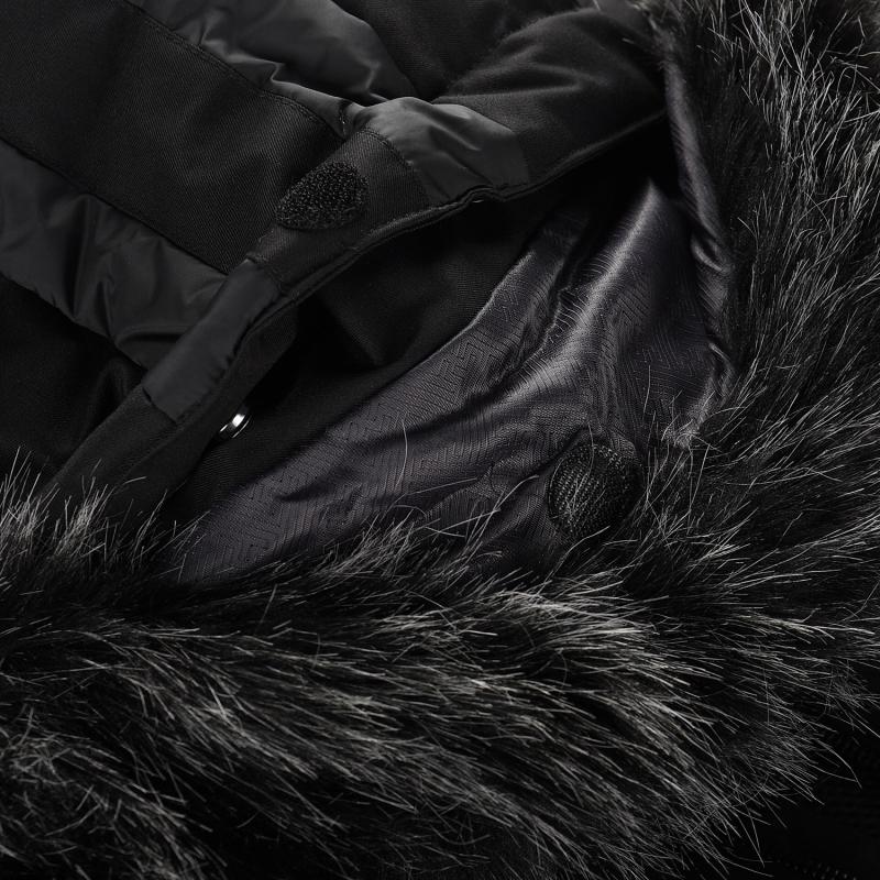 Stredná hrejivá výplň v kombinácii s efektnou podšívkou a priliehavým strihom poskytuje pohodlie a dostatok voľnosti pohybu. Švy sú podľaľpené pre lepšiu ochranu proti prenikaniu vody, pričom prešívanie má dekoratívny charakter. Kapucňa je odnímateľná a dá sa stiahnuť, rovnako ako kožušina a vnútorný hrejivý golier, ktoré je možné tiež odobrať podľa potreby.