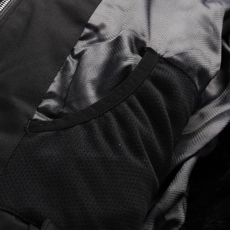 Bunda ponúka šesť praktických vreciek, ktoré umožňujú bezpečné uloženie drobností a kľúčenku integrovanú vo vrecku pre jednoduché prenášanie kľúčov. Štýlová nášivka na rukáve dodáva bunde charakter a podčiarkuje jej športový vzhľad.