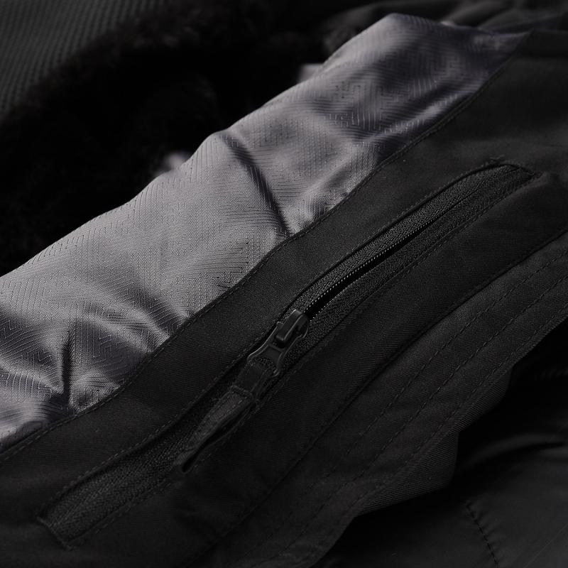 Kapucňa je odopínateľná a vybavená stiahnutím pre lepšie prispôsobenie, rovnako ako kožušina a vnútorný hrejivý golier, ktoré je možné tiež odopnúť podľa potreby. Rukávy majú vnútornú elastickú manžetu s otvorom na palec, ktorá zabraňuje prenikaniu chladu a zabezpečuje lepšiu fixáciu rukáva.