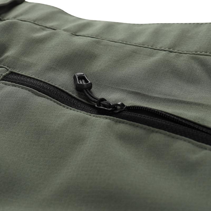Pas je všitý do gumy, doplněný o stahování na šňůrku a poutka na pásek, takže si kalhoty snadno přizpůsobíte své postavě. K dispozici jsou čtyři kapsy - dvě přední, jedna zadní a jedna boční na zip, které poskytují dostatek prostoru pro uložení nezbytných věcí.