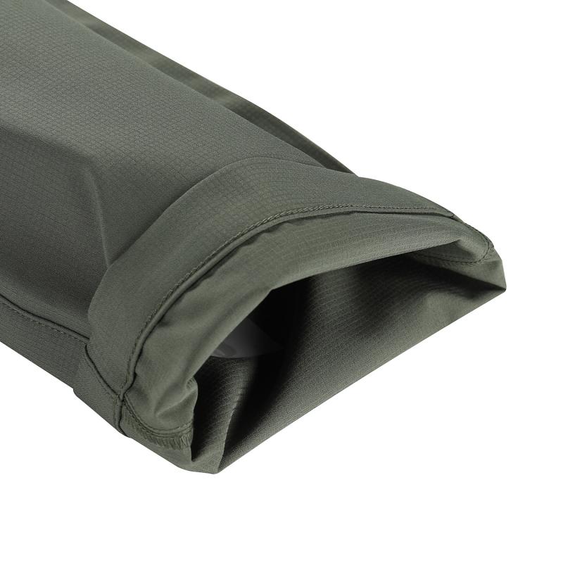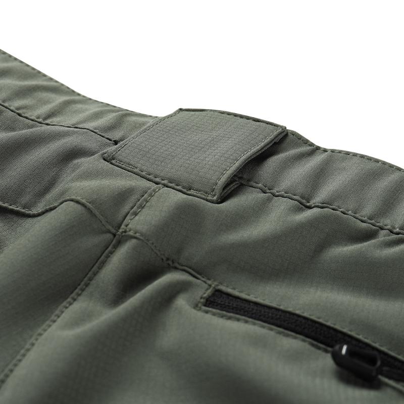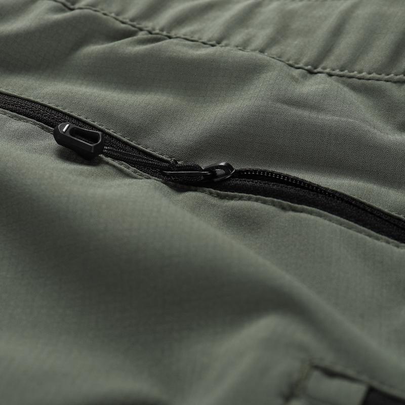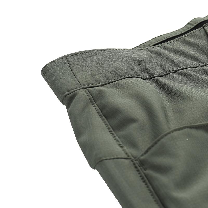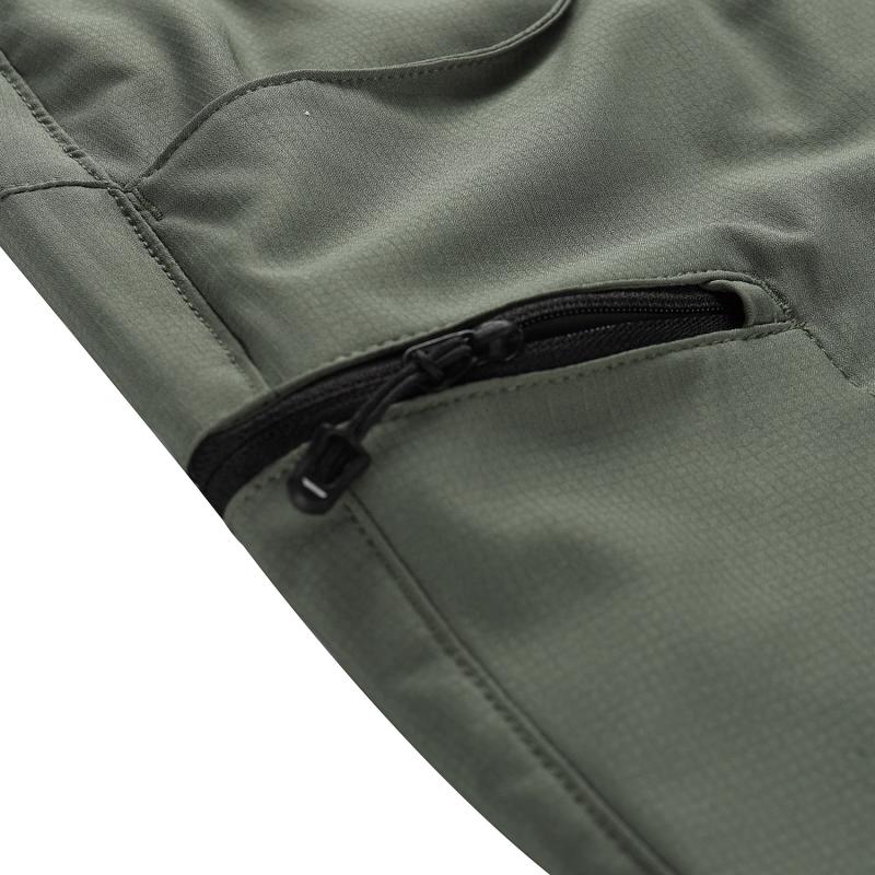 Polopřiléhavý střih je doplněný o anatomicky tvarovaná kolena, která zajišťují lepší pohybovou volnost a pohodlí. Pas je vybaven stahovací šňůrkou a poutky na pásek, což umožňuje individuální přizpůsobení. K dispozici jsou čtyři kapsy na zip – dvě po stranách, jedna přední a jedna zadní – pro bezpečné uložení drobností během pohybu.