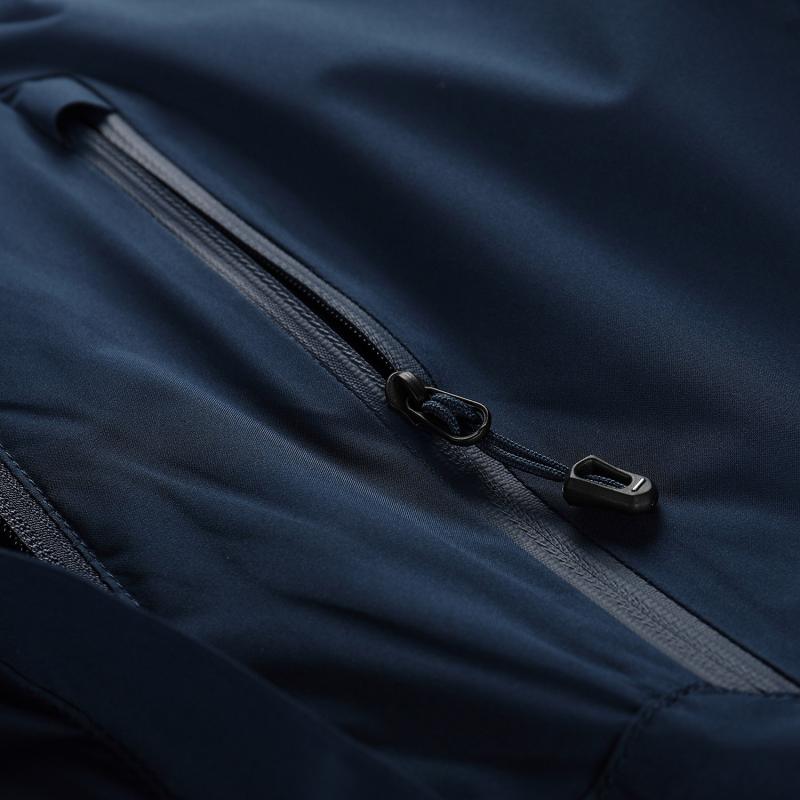 Predĺžený zadný diel s možnosťou sťahovania gumičkou chráni bedrá pred vetrom a chladom, čo je výhodné najmä pri dlhších pobytoch vonku. Bunda obsahuje štyri vrecká na zips - náprsné s vodeodolným zipsom, dve predné a jedno vnútorné, kam bezpečne uložíte drobnosti, mobil alebo kľúče.