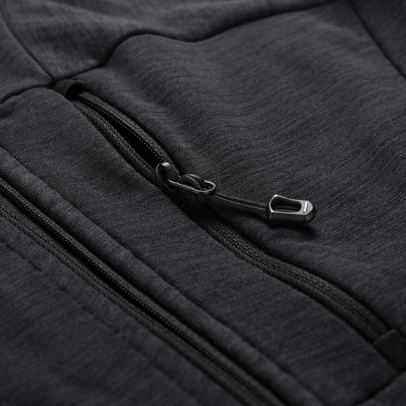 Mikina obsahuje celkovo tri vrecká: dve predné a jedno náprsné na zips, pričom dlhšie ťaháky uľahčujú manipuláciu s nimi. Reflexná potlač na prednom diely zvyšuje viditeľnosť za zníženej viditeľnosti a podčiarkuje športový charakter.