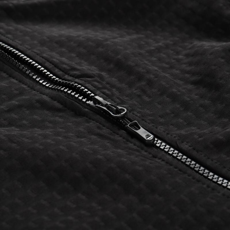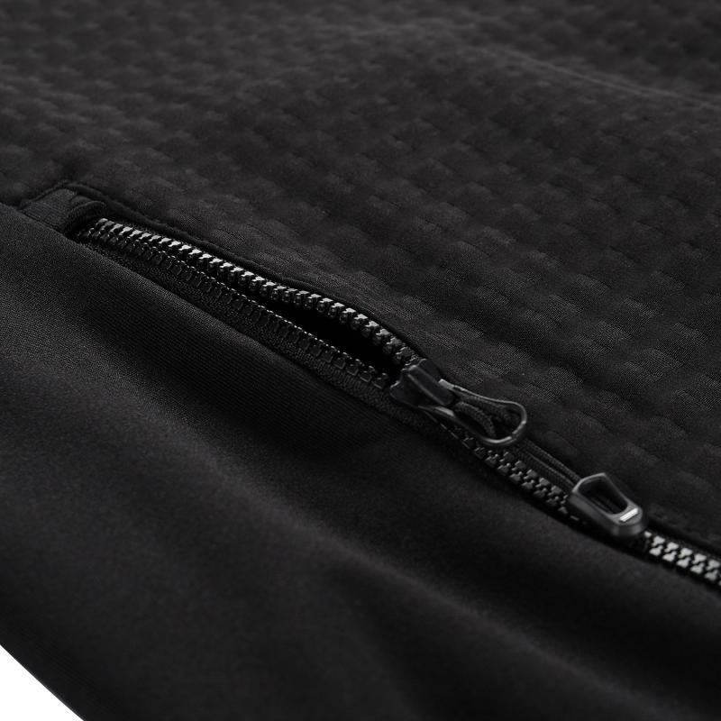Univerzální pánská mikina na zip vhodná na outdoor i sportovní aktivity, nabízí větruodolnost, prodyšnost a pohodlný přiléhavý střih.Tato mikina je vyrobena z materiálu, který kombinuje větruodolnost, prodyšnost a rychlé schnutí s vysokou pružností, což zajišťuje pohodlí a hřejivý komfort při různých aktivitách. Kontrastní embosovaný materiál dodává moderní vzhled a spolu s přiléhavým střihem a plochými švy přispívá k pohodlnému pohybu bez otlaků.