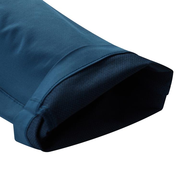 Materiál je navyše vybavený impregnáciou, ktorá zvyšuje jeho odolnosť proti vode a vetru, pričom zostáva paropriepustný a pružný, čo prispieva k celodennému komfortu.
