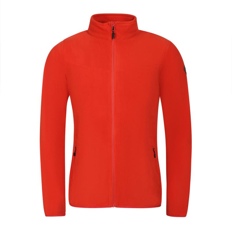 Pánska fleecová mikina z pružného a hrejivého microfleece materiálu ponúka pohodlie, tepelný komfort a praktické detaily pre šport i voľný čas.Mikina je vyrobená z priedušného, pružného a hrejivého microfleece materiálu s embosovanou štruktúrou, ktorá zabezpečuje tepelný komfort pri každom pohybe. Polopriliehavý strih kopíruje postavu a vyšší golier s krytkou pri brade chráni pred chladom a vetrom. Rukávy i spodná časť sú lemované gumou, čo zlepšuje prispôsobenie a zabraňuje prenikaniu studeného vzduchu. Praktické sú dve predné vrecká so zipsom, ktoré bezpečne uschovajú drobnosti počas aktivít. Dlhšie ťaháčiky na zips uľahčujú manipuláciu aj v rukaviciach a potlač na prednom diely dodáva mikine moderný vzhľad.