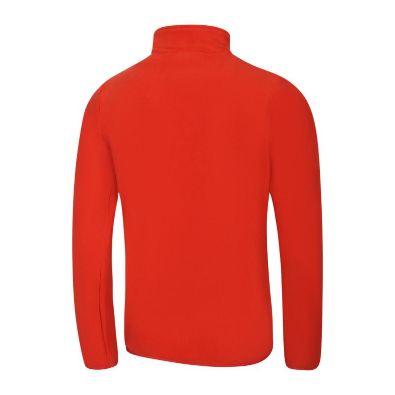 Mikina je vyrobená z priedušného, pružného a hrejivého microfleece materiálu s embosovanou štruktúrou, ktorá zabezpečuje tepelný komfort pri každom pohybe. Polopriliehavý strih kopíruje postavu a vyšší golier s krytkou pri brade chráni pred chladom a vetrom. Rukávy i spodná časť sú lemované gumou, čo zlepšuje prispôsobenie a zabraňuje prenikaniu studeného vzduchu. Praktické sú dve predné vrecká so zipsom, ktoré bezpečne uschovajú drobnosti počas aktivít. Dlhšie ťaháčiky na zips uľahčujú manipuláciu aj v rukaviciach a potlač na prednom diely dodáva mikine moderný vzhľad.