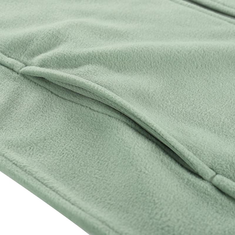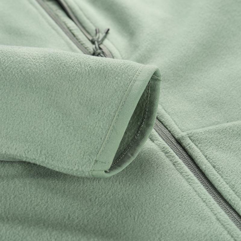 Mikina má dlouhé zapínání na zip, praktický stojáček, krytku u brady, spodní část lemovanou gumou, 2 kapsy se zipy a delší taháčky. Složení materiálu: 100% polyester.
