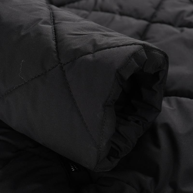 Kabát je vybavený neodpínateľnou kapucňou, ktorá poskytuje ďalšiu vrstvu ochrany pred vetrom a nepriaznivým počasím. Praktické zapínanie na dvojcestný zips uľahčuje obliekanie a umožňuje regulovať pohodlie pri chôdzi.