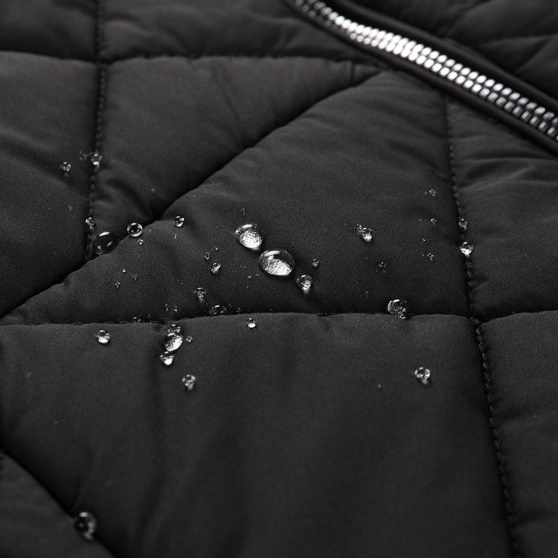 Kabát je vyrobený z ultralehkého, pružného a vetruodolného materiálu s vodoodpudivým záterom, ktorý efektívne chráni pred snehom a mrazom, zároveň umožňuje pohodlný pohyb.