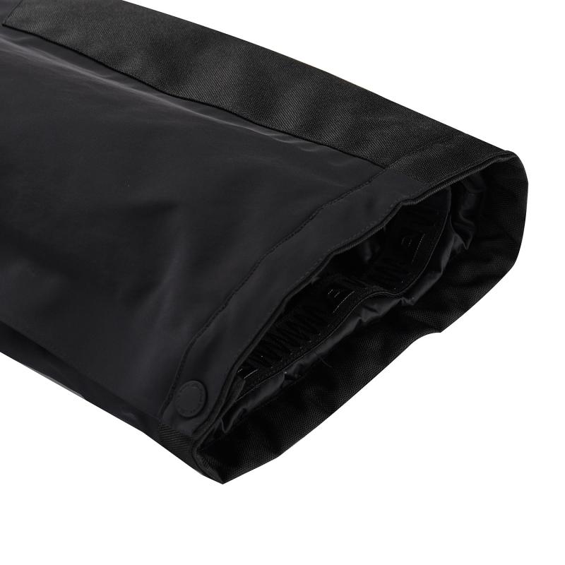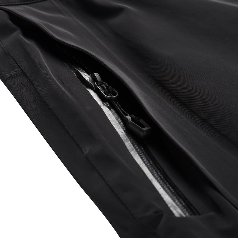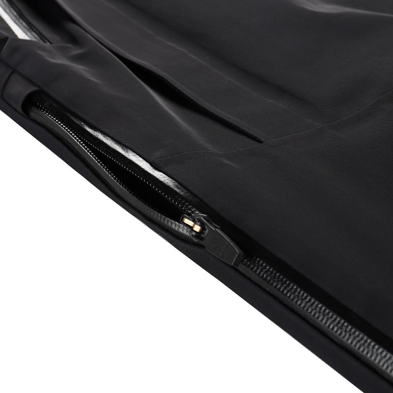Kalhoty disponují dvěma praktickými kapsami s voděodolnými zipy, které chrání obsah před vlhkostí. Potisk na předním dílu dodává kalhotám decentní vzhled, zatímco delší taháčky u zipů umožňují snadnou manipulaci i v rukavicích. Švy jsou podlepené, což zvyšuje celkovou odolnost a nepropustnost materiálu.