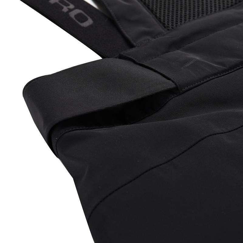 Pas je zvýšený na zadním dílu a lze ho regulovat pro lepší přizpůsobení, šle jsou nastavitelné a odepínatelné podle potřeby. Kalhoty můžete snadno přichytit k bundě pomocí poutka, což zamezí nežádoucímu posunu během pohybu. Pro lepší cirkulaci vzduchu a regulaci teploty slouží odvětrávání umístěné na vnější straně stehen. Nohavice jsou zpevněné ve spodní části speciálním materiálem, který zabraňuje oděru, a jsou rozepínací pro snadnější obouvání. Sněhová manžeta je neodepínatelná a spolehlivě zabraňuje pronikání sněhu dovnitř.