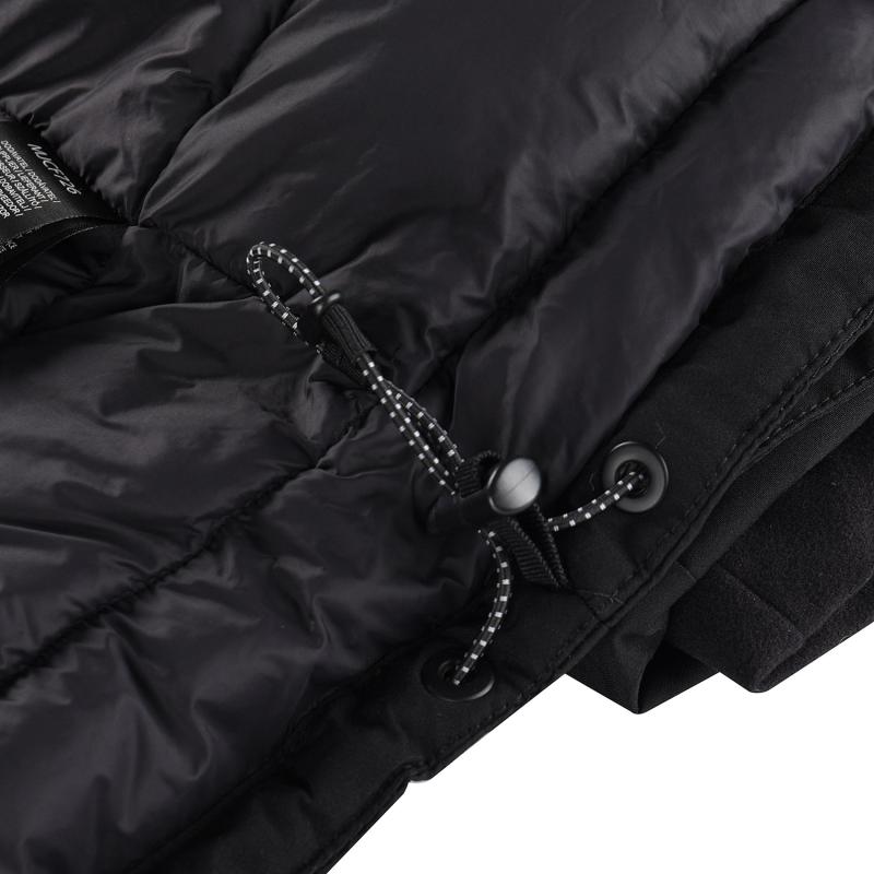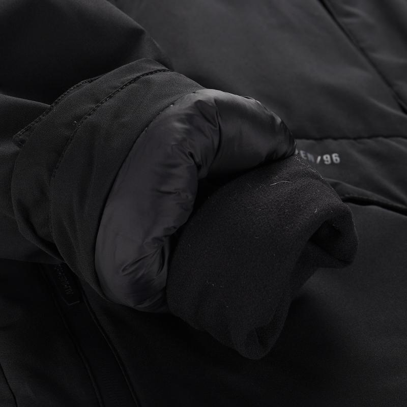 Silná hrejivá výplň v kombinácii s golierom z hrejivého materiálu, kapucňou so sťahovaním a krytkou brady poskytuje dostatočné teplo aj pri nízkych teplotách. Manžety z hrejivého úpletu bránia prenikaniu studeného vzduchu, čím prispievajú k lepšiemu udržaniu tepla.