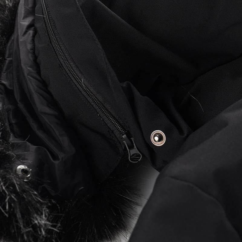 Praktické využitie bundy zabezpečuje osem vreciek, vhodných na bezpečné uloženie mobilného telefónu, kľúčov a ďalších nevyhnutností. Spodná časť je opatrená reguláciou šírky pomocou gumičky, čo umožňuje individuálne prispôsobenie strihu podľa potreby. Kapucňa je neodopínateľná, no umelá kožušina na nej je odnímateľná, čo dáva možnosť meniť vzhľad podľa situácie.