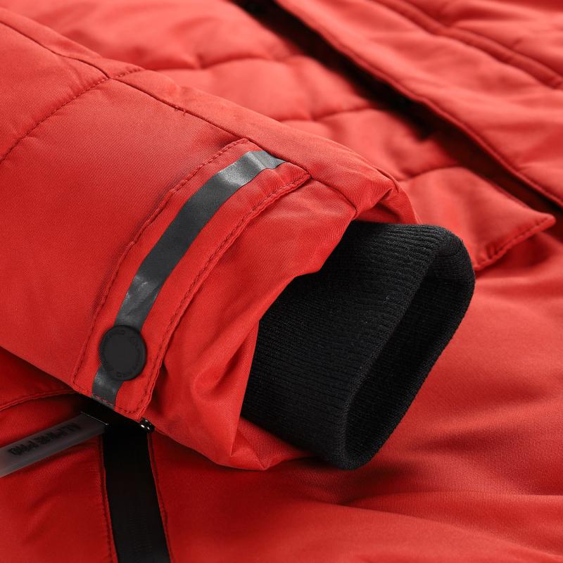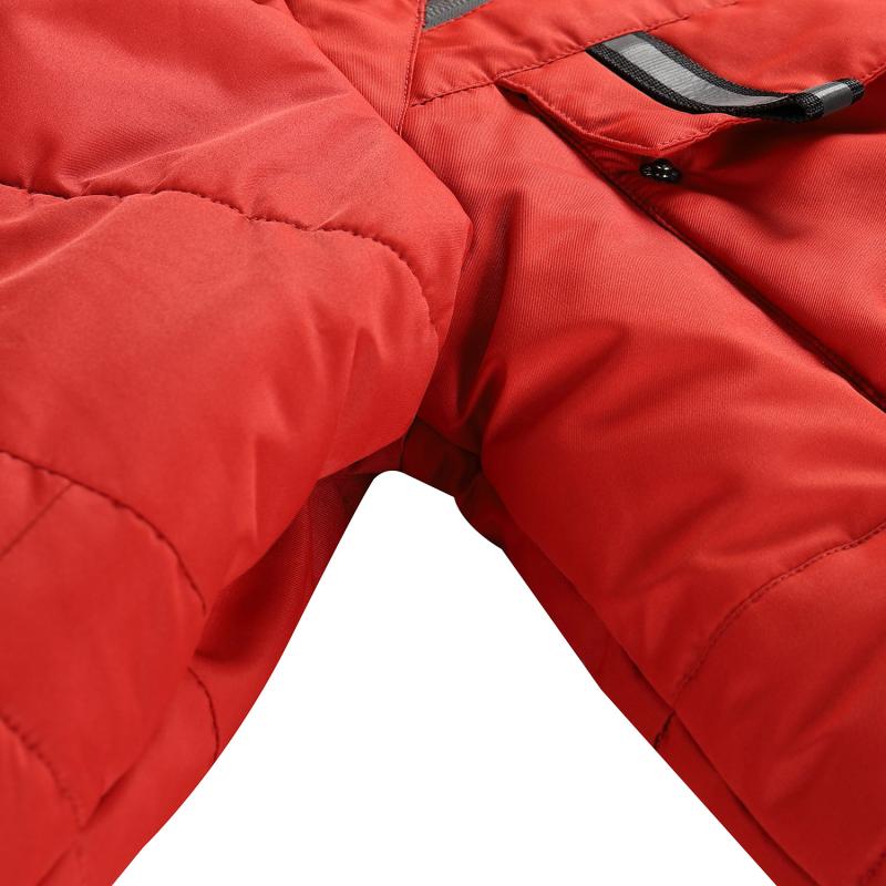Silná hřejivá výplň poskytuje potřebné teplo během chladných dnů, zatímco límec z příjemného materiálu, kapuce se stahováním a krytka brady zvyšují komfort a ochranu před chladem. Rukávy jsou vybavené manžetou z hřejivého úpletu a dolní část bundy má regulaci šířky, což zabraňuje pronikání studeného vzduchu a umožňuje přizpůsobení střihu podle potřeby.