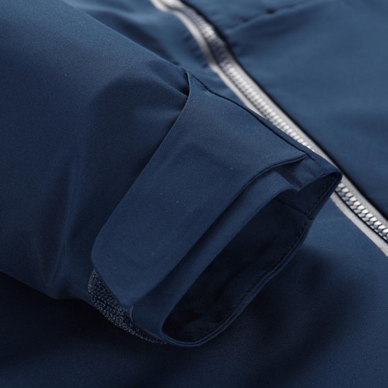 Spodní okraj je vzadu prodloužený a snadno nastavitelný pomocí stahovací gumičky, což pomáhá udržet teplo a zabraňuje pronikání větru. Hlavní zip je voděodolný a u brady opatřen krytkou z hřejivého materiálu, která chrání pokožku před odřením. Rukávy lze upravit pomocí manžety se suchým zipem, což umožňuje přizpůsobení šířky a lepší ochranu před chladem.