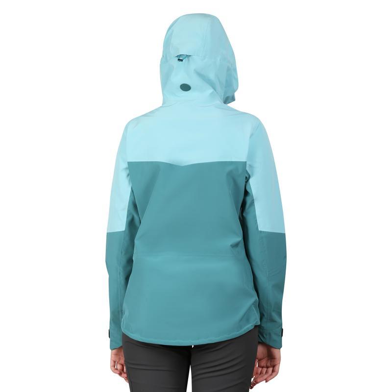 Bunda je vybavena podlepenými švy, které zabraňují pronikání vody, a neodepínatelnou kapucí se stahováním, která spolehlivě ochrání hlavu před deštěm. Pro lepší ventilaci slouží odvětrávání v podpaží s voděodolnými zipy, které pomáhají regulovat teplotu a zabraňují přehřátí. Prodloužená zadní část bundy nabízí možnost regulace šířky pomocí gumičky, což zlepšuje přizpůsobení a komfort.