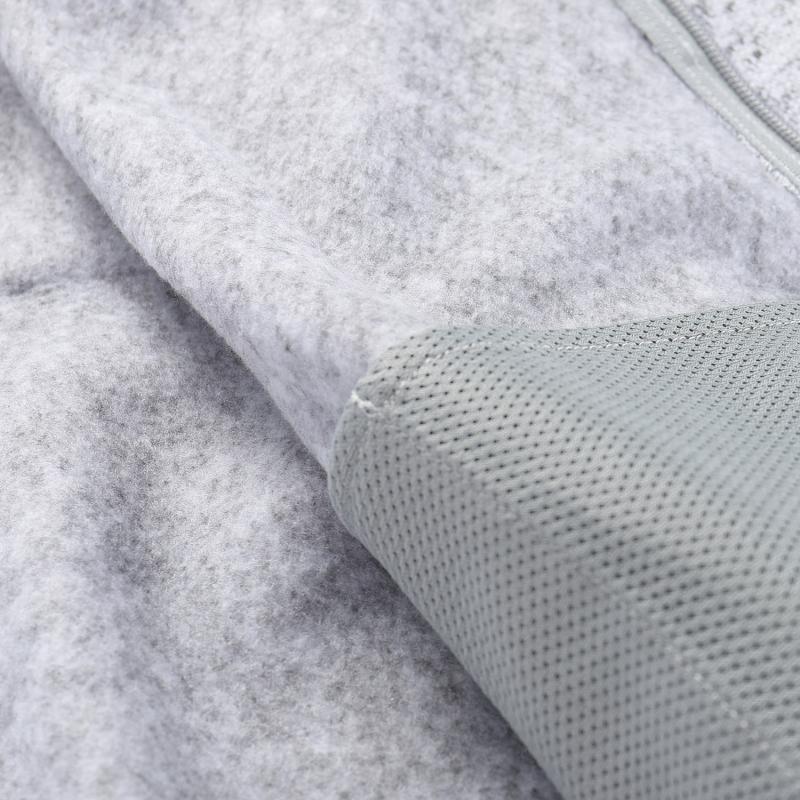 Táto pánska mikina je navrhnutá tak, aby poskytovala tepelný komfort a pohodlie počas chladnejších dní. Vyrobená je z kvalitného melírovaného a štruktúrovaného polyesterového materiálu, ktorý vďaka technológii SUPRATHERM spoľahlivo udržiava teplo a zároveň je priedušný a odolný. Rubnú stranu tvoria nadýchané vlákna, medzi ktorými vznikajú vzduchové kapsy, ktoré pomáhajú udržať telesné teplo. Materiál rýchlo odvádza vlhkosť od tela na povrch a nízka navlhavosť vlákien podporuje rýchle schnutie, čo oceníte pri športe i bežnom nosení.