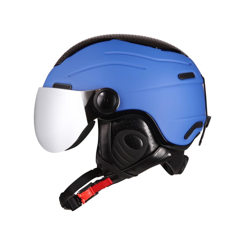 Lyžařská helma nabízí spolehlivou ochranu hlavy i očí díky odepínatelnému štítu a větracím otvorům pro komfort při zimních sportech.Tato lyžařská helma je navržena tak, aby poskytovala spolehlivou ochranu hlavy i očí během lyžování a snowboardingu. Je vybavena praktickým a pevným zapínáním, které zajišťuje bezpečnou fixaci přilby na hlavě a minimalizuje riziko jejího posunu během jízdy. Součástí je také poutko, které brání smeknutí brýlí, což oceníte zejména při rychlé jízdě.